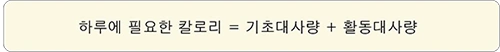 칼로리를 계산할 때의 기초대사량은 잠을 자거나 가만히 있을 때에도 소비되는 에너지양입니다. 그리고 활동대사량은 일상생활이나 운동을 통해 소비되는 에너지양을 말합니다.